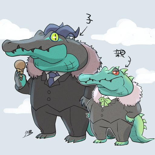 クロ鰐 再録イラスト【親子ワニ】
